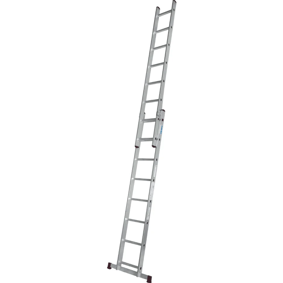 Порошковое покрытие направляющих профилей обеспечивает плавное и комфортное выдвижение секций. Перекладины закреплены развальцованными соединениями, а боковины оснащены противоскользящими наконечниками для устойчивости. Самофиксирующиеся стопорные рычаги гарантируют безопасность и надёжную фиксацию лестницы в рабочем положении.