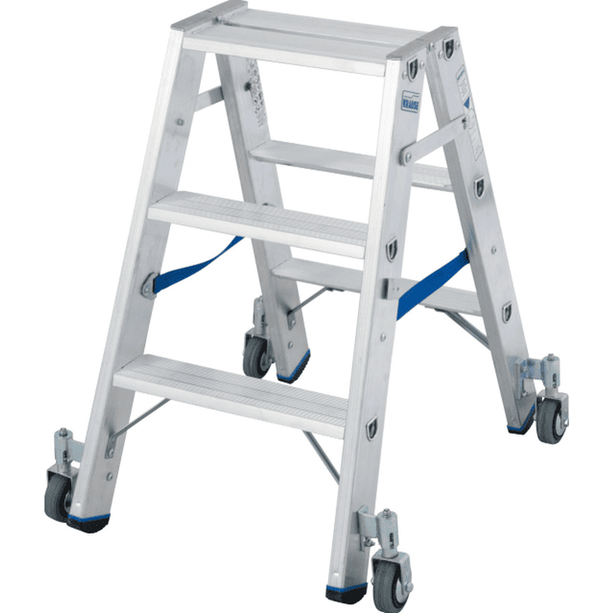 Передвижная двухсторонняя стремянка Krause STABILO — профессиональная модель с высокой мобильностью и простотой эксплуатации, идеально подходящая для работ с частым перемещением.