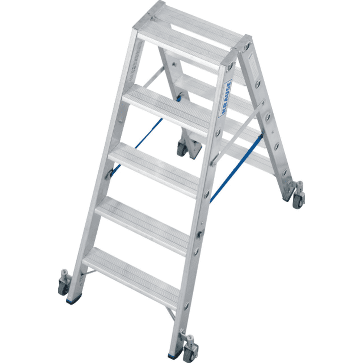Передвижная двухсторонняя стремянка Krause STABILO — профессиональная модель с высокой мобильностью и удобством эксплуатации, подходящая для работ с частым перемещением.